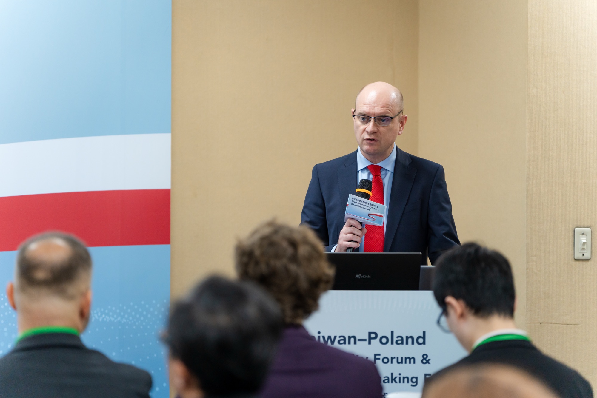 From October 21 to 23, 2025, the European Innovation Week (EIW) took place in Taipei. On October 21, 2025, the Director of the Polish Office in Taipei, Janusz Bilski, attended the official opening ceremony of the event. On October 22, Director J. Bilski delivered the opening speech at the Taiwan–Poland Smart City Forum and the B2B matchmaking sessions. In addition, as part of the EIW, the Taiwan–Poland Smart Mobility Forum and B2B meetings were also held.