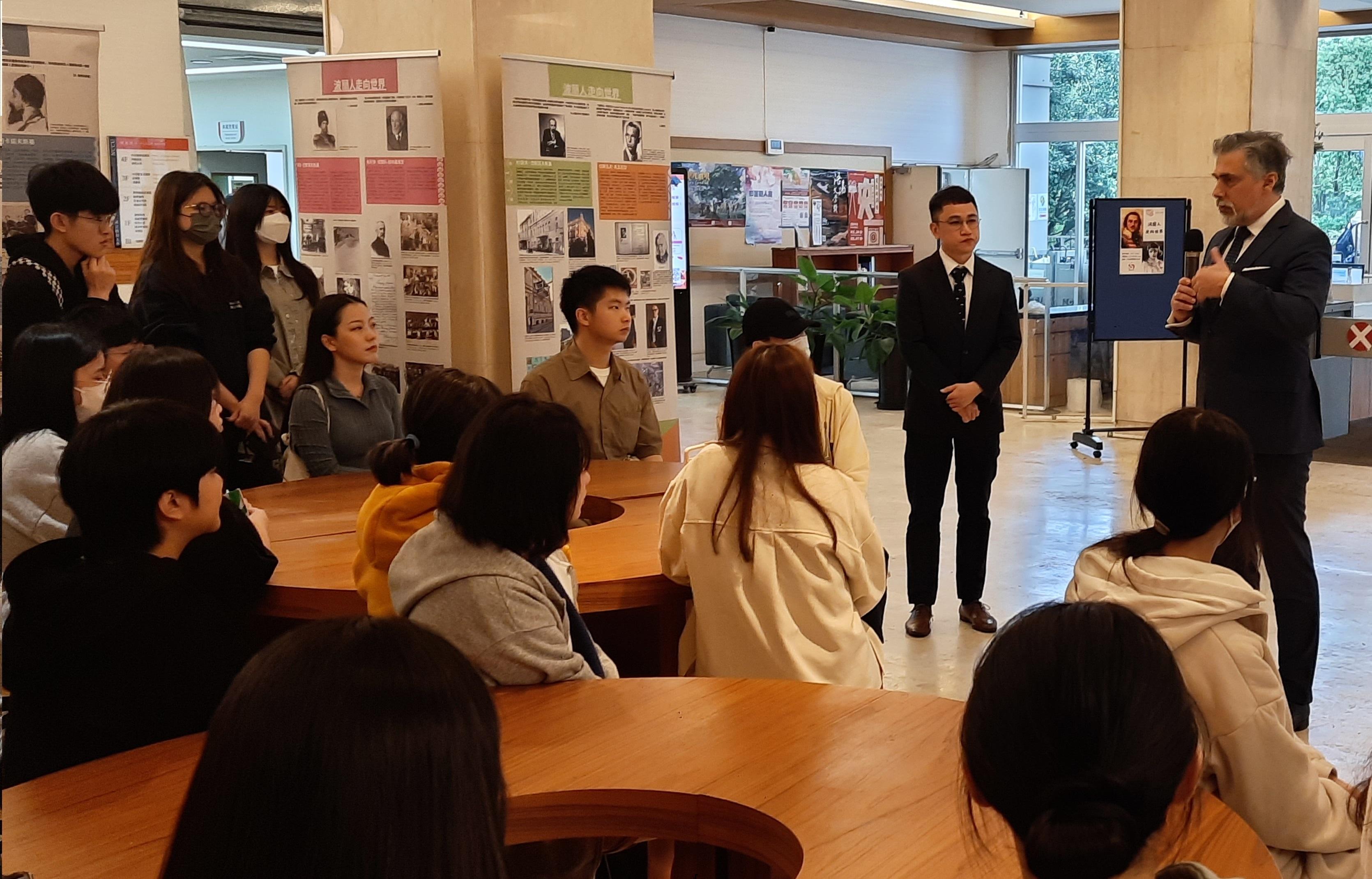 On April 9, 2024 the inauguration of the exhibition titled “The Known and the Unknown. Poles’ Contribution to the World” was held in the library of National Chengchi University (NCCU), at which the dean of the Department of Slavic Studies, Ko Chiung-ying, and the director of the Polish Office in Taipei, Cyryl Kozaczewski, gave a speech. After the inauguration of the exhibition, the director of the Polish Office gave a lecture to the Slavic Studies students, referring to the history of famous Poles, and also touched on key information about Poland.
