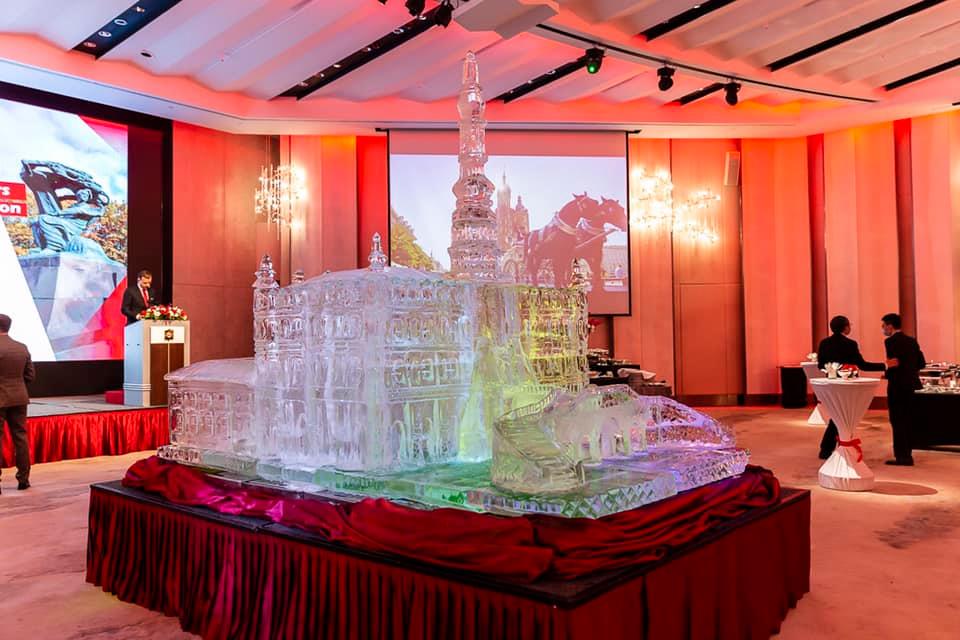 晚會期間,來賓聆聽由陳介涵教授 (Kimberly Chen Afanasova) 演奏蕭邦的作品。 會場還展示了以扎莫希奇市政廳 (Ratusz w Zamościu)為造型特別設計的冰雕,以及波蘭海報學派的運動海報展。