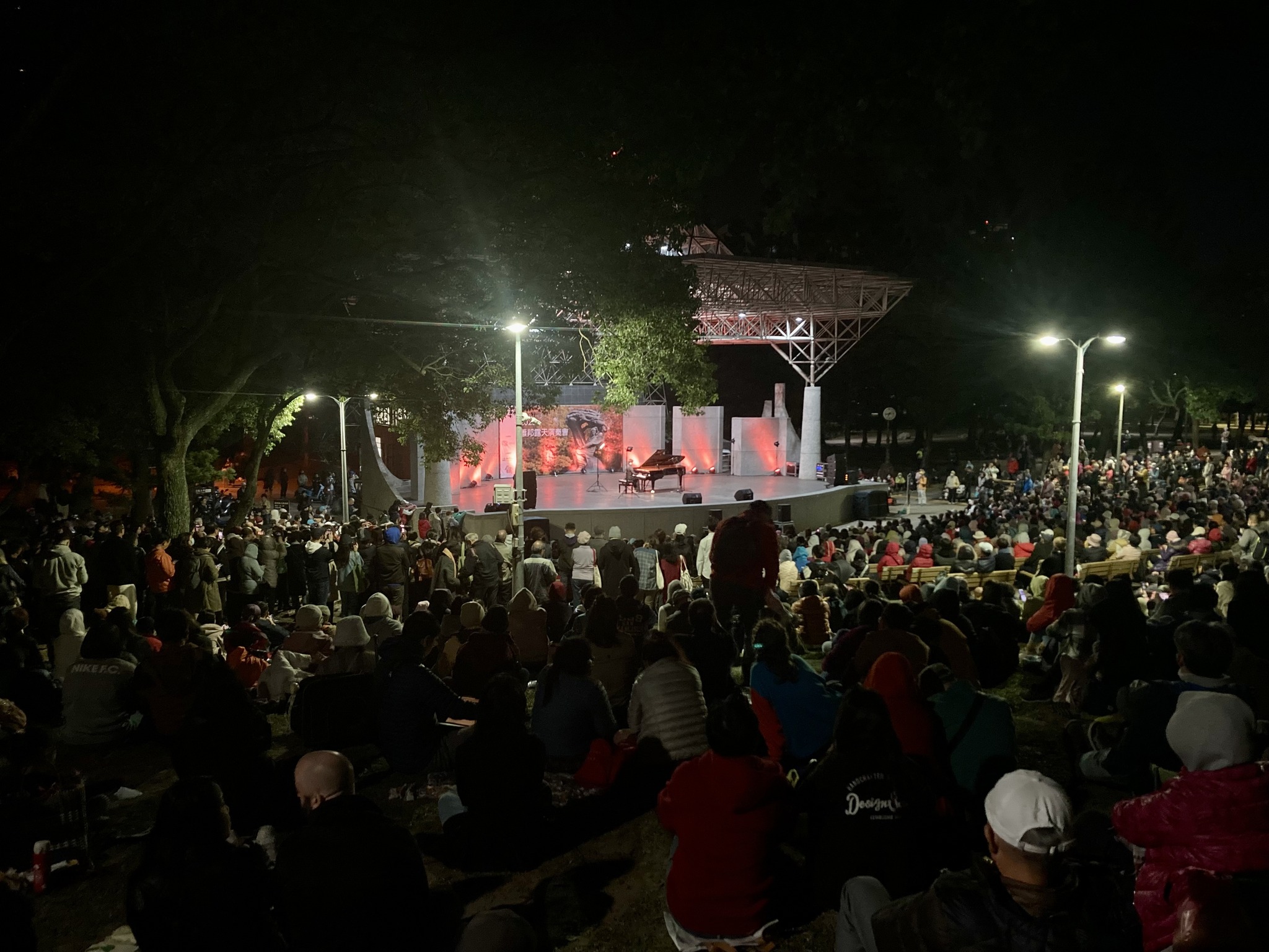 音樂會深受觀眾歡迎。大約有 1500 人坐在舞台周圍和附近。